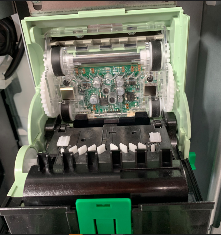 ②識別部ラッチを開き、紙幣詰まりや異物が紛れていないかをご確認ください。