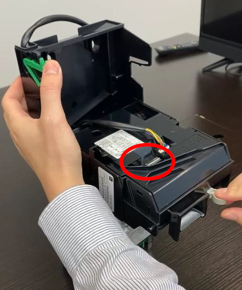 自身の方へ引っ張ると、硬貨選別機を取り外すことが出来ます。