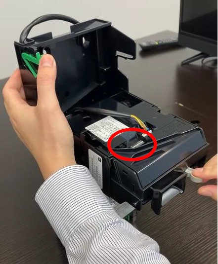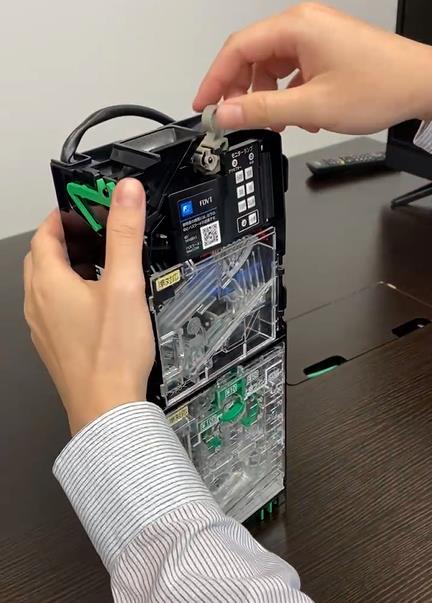 ④硬貨選別機を倒すと、ディップスイッチが見えます。