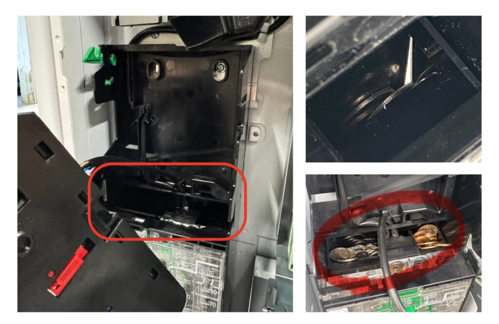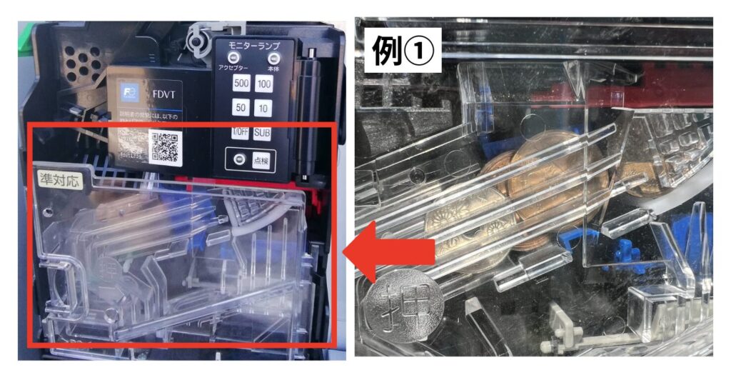 硬貨が通る通路部分に硬貨が詰まっている場合は、可能な範囲で取り除いてください。