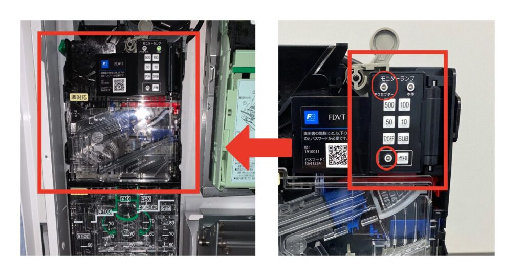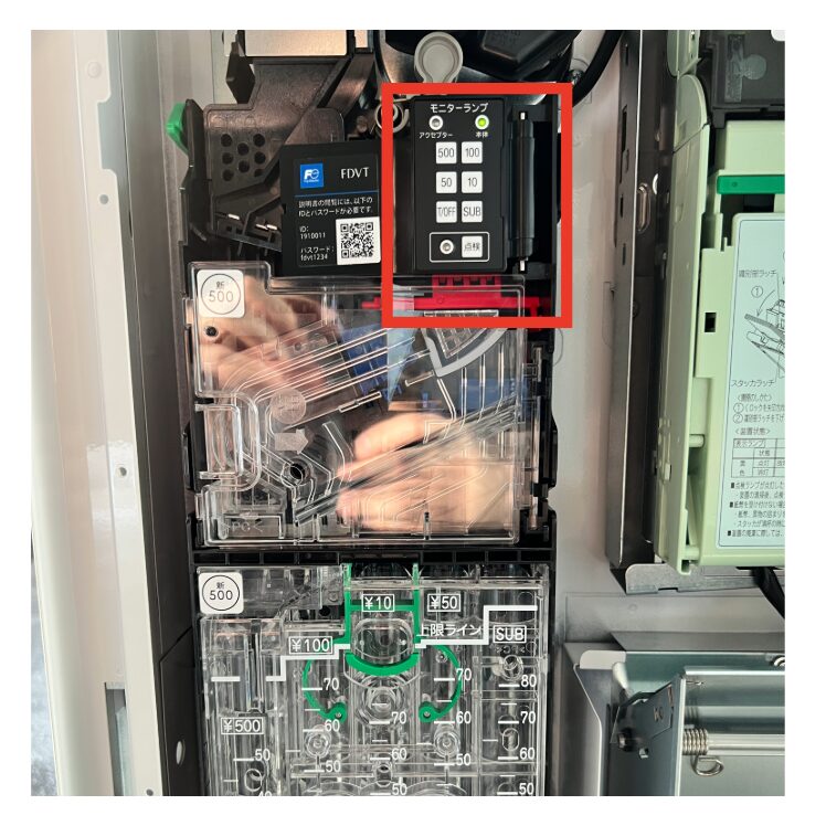 その場合は、硬貨通路をご確認いただき、硬貨や異物が詰まっていないかをご確認ください。