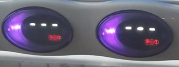 常温設定された商品の押しボタンは紫色に点灯します。