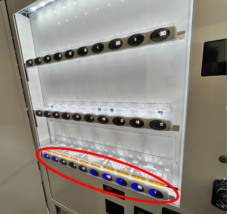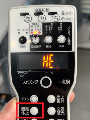 2.販売可能ランプが点灯している押しボタンを手で押し、消灯(未設定)状態にします
